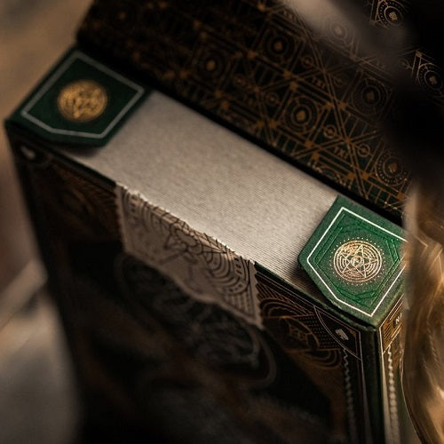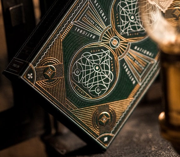 A new take on the new standard. The Green National Deck produced by Theory 11 and designed in collaboration with Harold Apples, no detail was overlooked on this ultra-intricate beautiful deck of premium playing cards. You will not find a more perfect deck of cards for magic, cardistry or poker. Letterpressed by Studio on Fire in St. Paul, both the tuck case and the playing cards are made in the USA using FSC-certified paper.