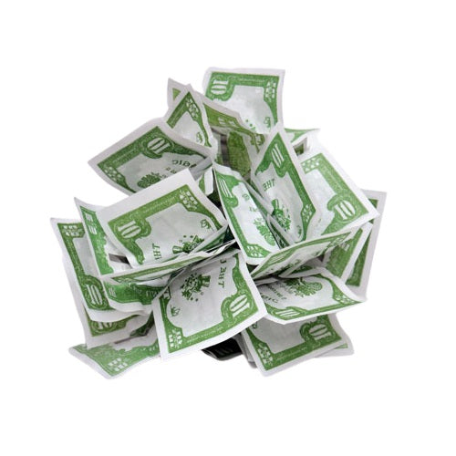 This spring fake money pack small and springs open to fill your production tubes / box. Everyone wishes they can make money spring up from nowhere. Now you can do just that with a pack or these handy Spring Bills. Yes, they look like a bouquet of real bills as they spring open in your hands, yet they compress into nearly no space at all.